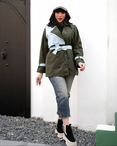 بارانی زنانه دوتیکه کتان ترکیبی با جین