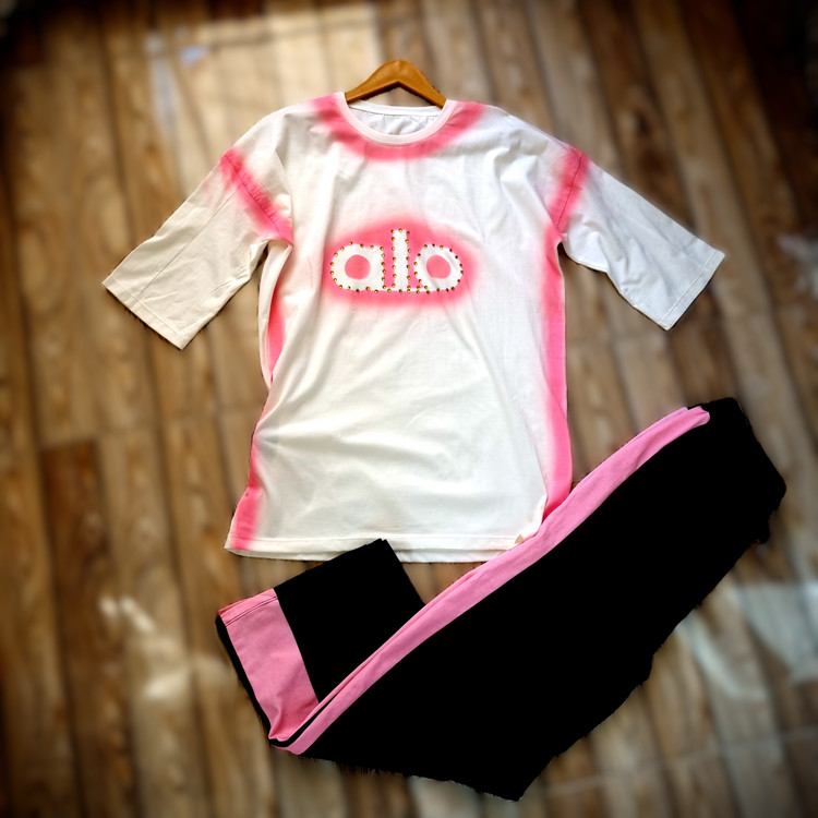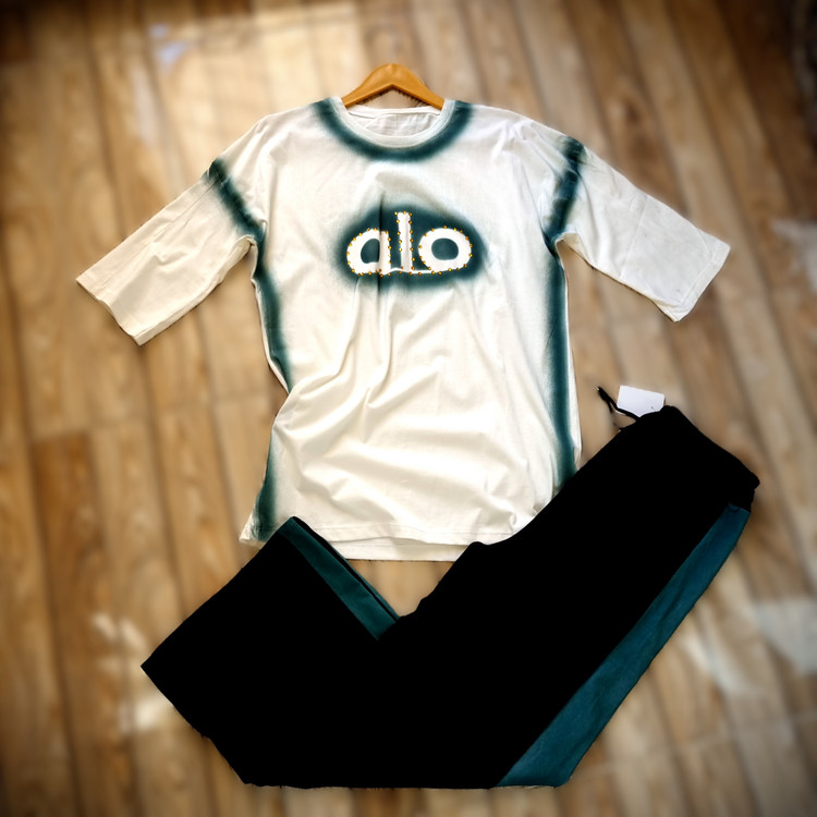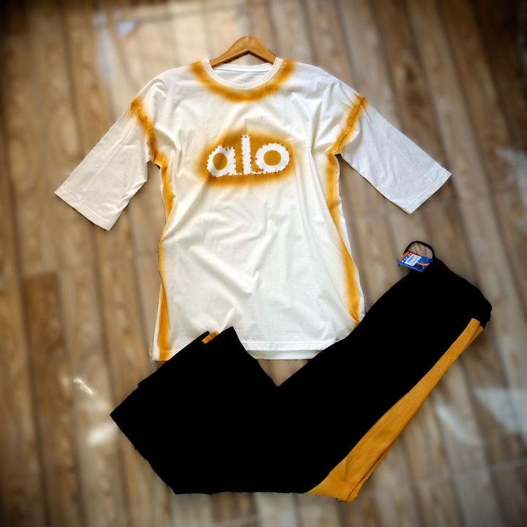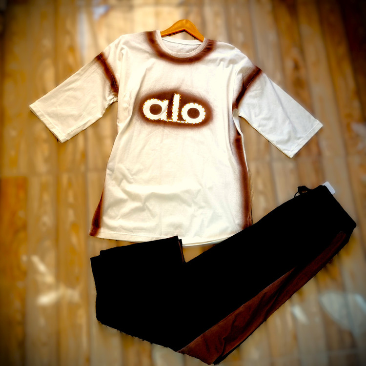 ست تیشرت شلوار ایربراش پنبه alo کد 127